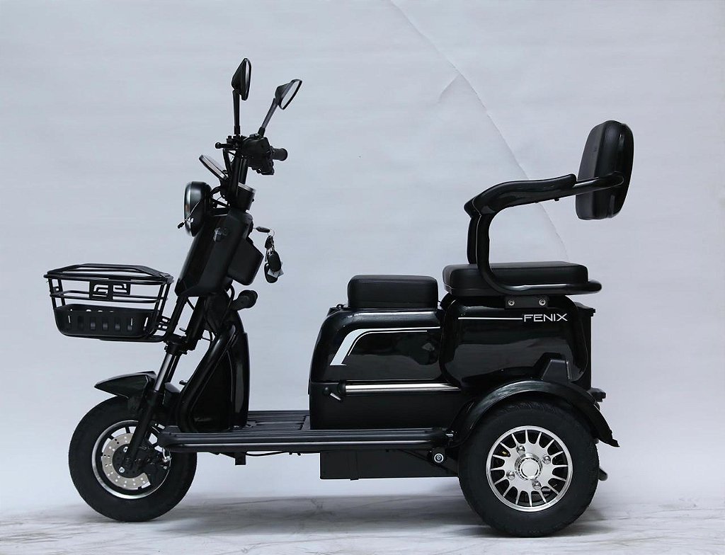 Agora também na versão com bateria de lítio removível, o tricíclo Fenix é moderno,versátil e completo para quem busca mobilidade com conforto. Ele pode levar até 02 adultos e 01 criança além de possuir um bagageiro traseiro com chave e cestinha frontal. É um produto que garante sua mobilidade e também seu lazer. Seguem abaixo suas principais características: